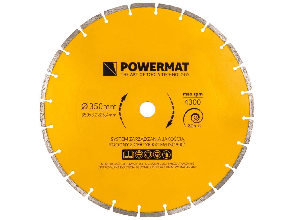 Fréza využíva diamantový kotúč s rozmermi 350 x 3,2 x 25,4 mm na vysoký rezný výkon aj v betóne, kameni a tehlách.