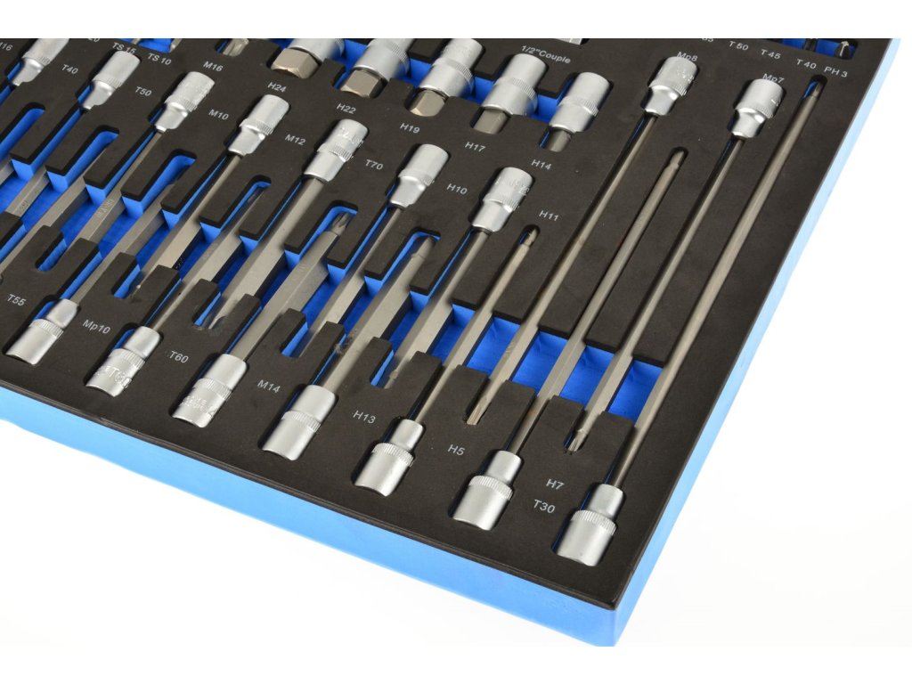 Sada nástrčkov a bitov TORX 102 kusov - PENOVÁ VLOŽKA DO DIELENSKÉHO VOZÍKA
