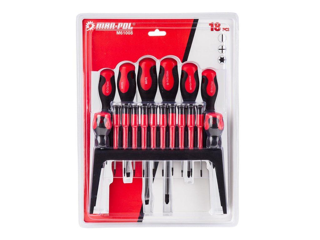 Sada 18 skrutkovačov renomovanej značky MAR-POL, vyrobená z chróm-vanádiovej ocele (CrV).