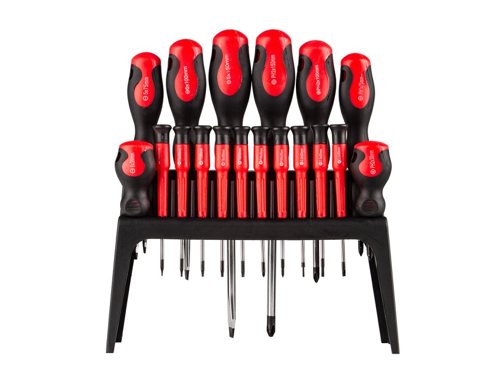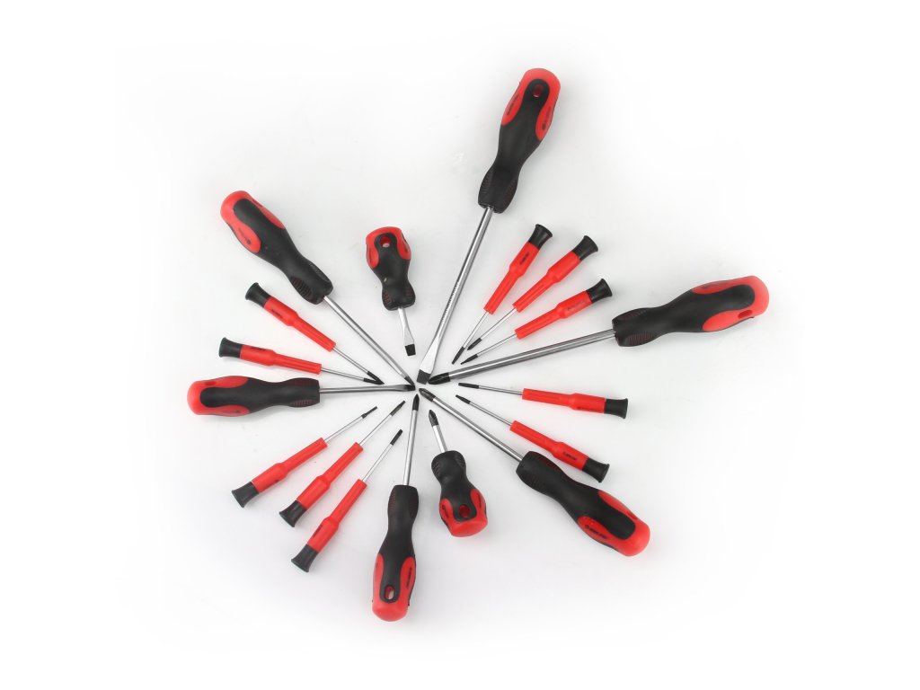 Ploché skrutkovače + krížové skrutkovače + torx v rôznych veľkostiach