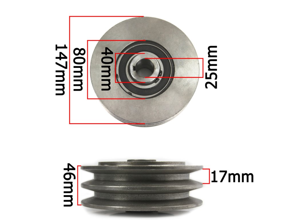 Odstredivá spojka s remenicou 147x25mm, 2 remene 17mm