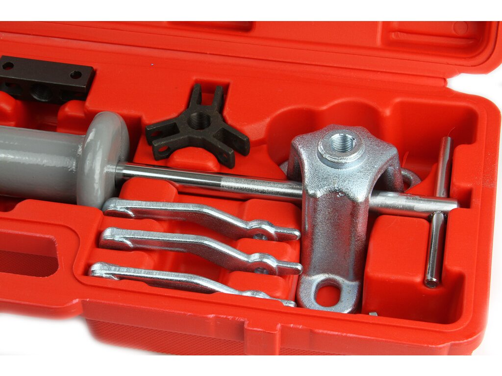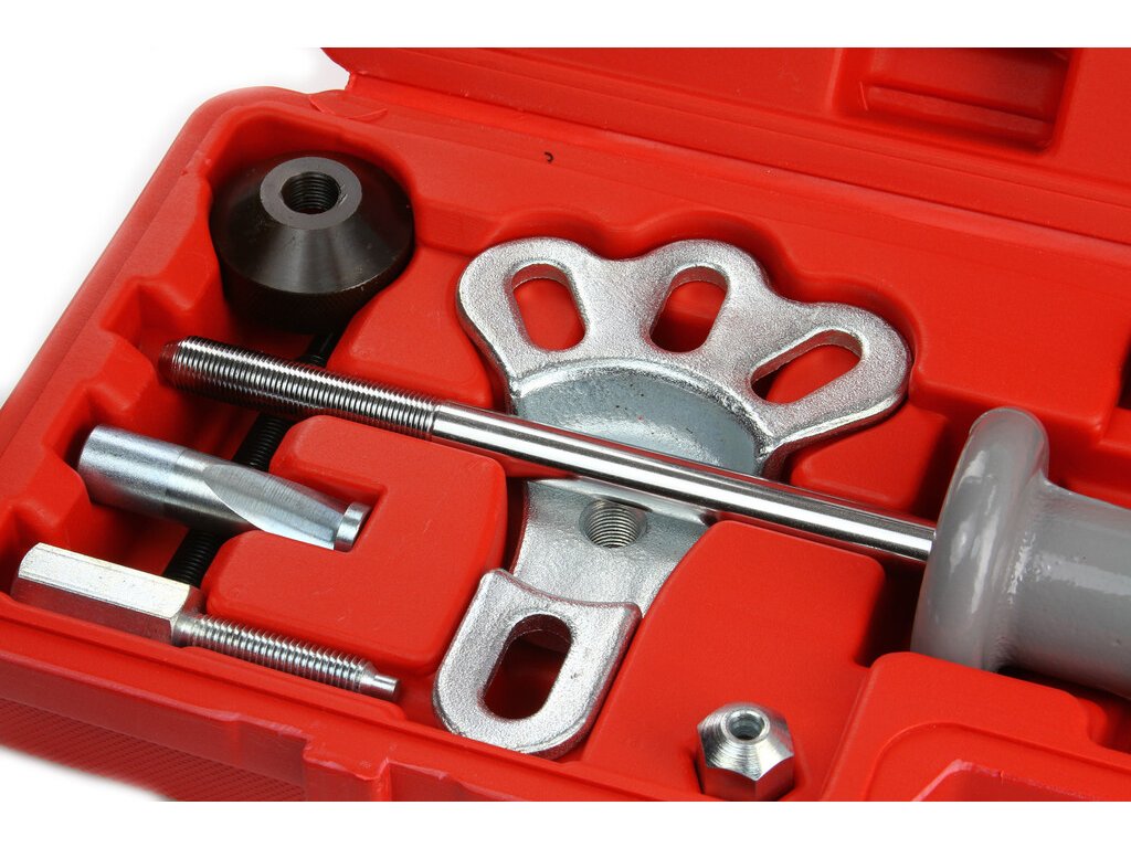 Sťahovák nábojov a ložísk kolies s reverzným kladivom je vynikajúcim univerzálnym nástrojom pre efektívnu demontáž nábojov, brzdových bubnov, piestov, ozubených kolies, ložísk a tesniacich krúžkov. Multifunkčný a praktický pomocník pre autoopravárov a mechanikov.