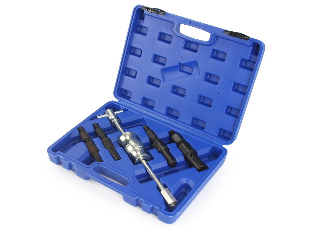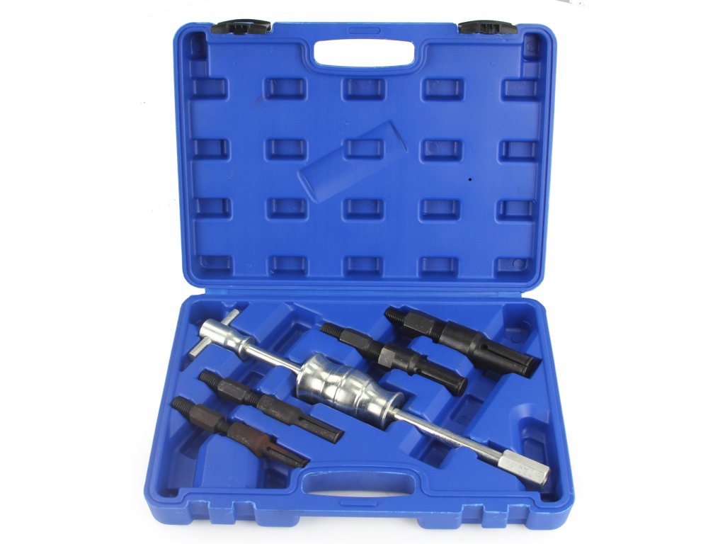 Sada obsahuje úderové posuvné kladivo (kĺzne, reverzné) a štyri upínacie klieštiny.