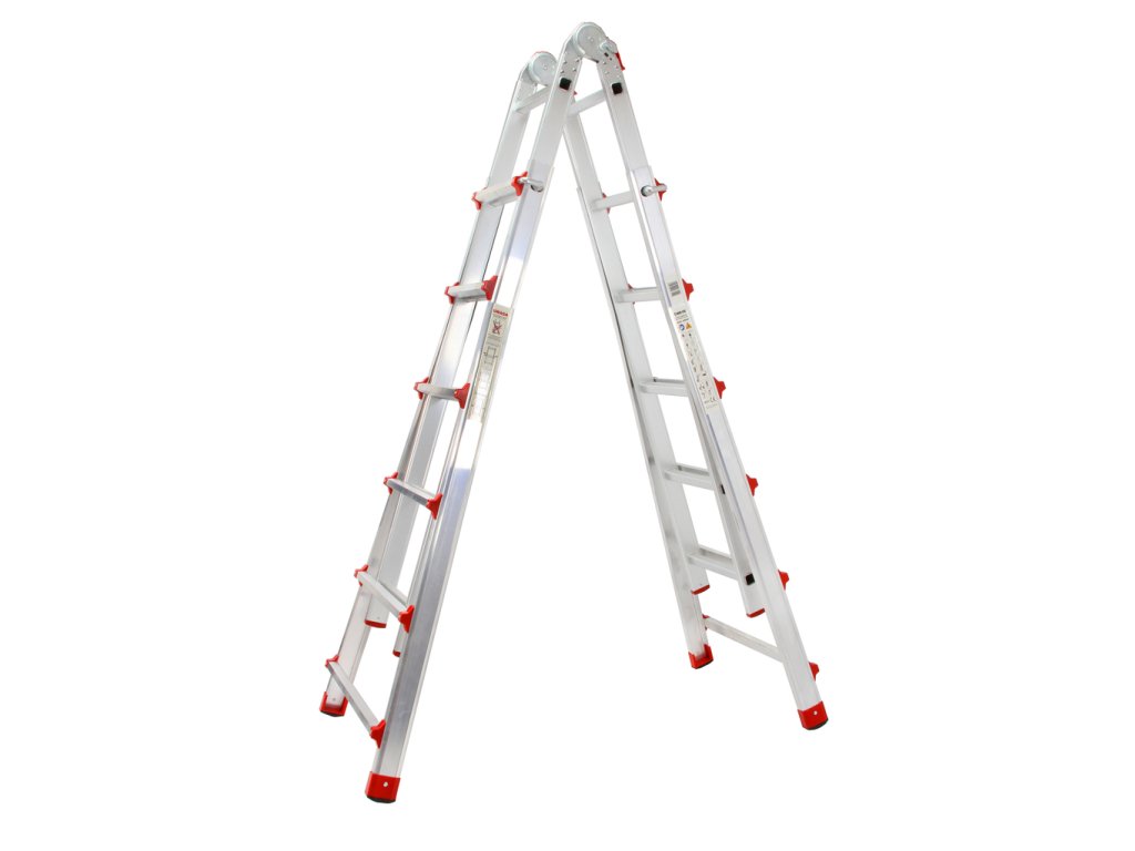 ► Kĺbový rebrík 6x4 je možné rozložiť aj v klasickom tzv voľne stojace, nazývané aj "AČKO". Vďaka tomuto nastaveniu môžete vykonávať väčšinu ľahkých prác do pracovnej výšky min. 167cm