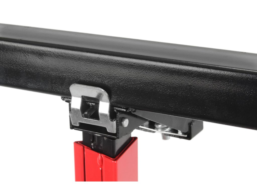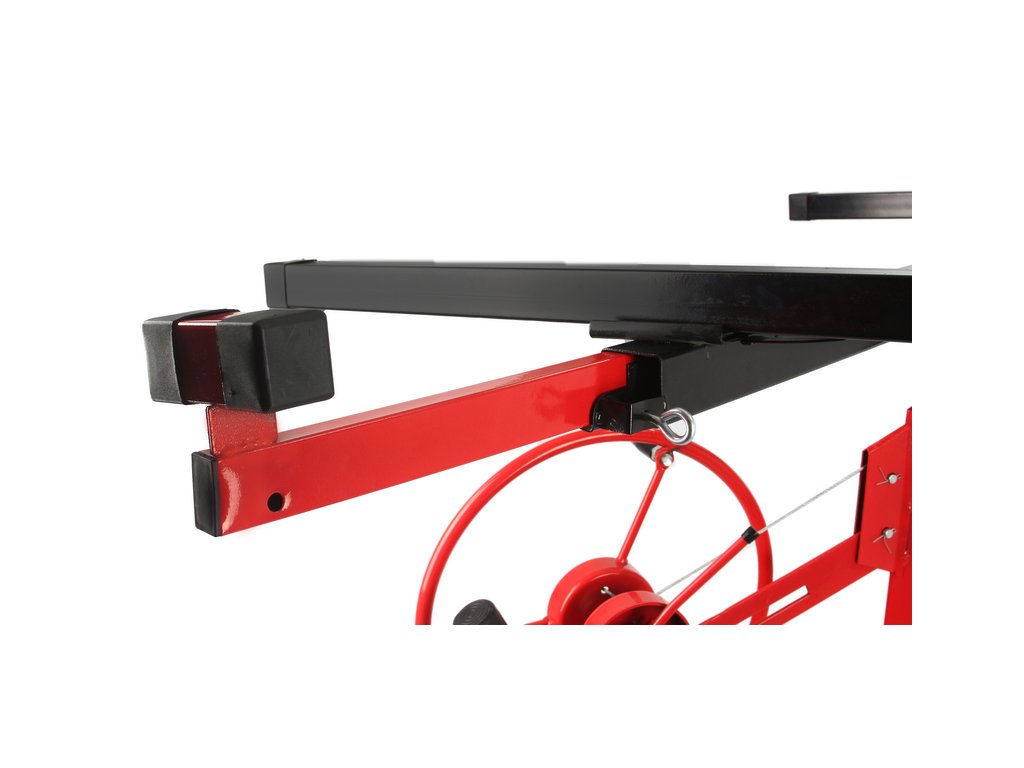 Celá konštrukcia zariadenia je vyrobená z ocele potiahnutej červeným ochranným povlakom. Špeciálne navrhnutý systém umožňuje plynulé zdvíhanie a spúšťanie dosky pomocou výložníka bez potreby vynaloženia veľkej sily. Po zdvíhaní sa rameno zaistí v požadovanej polohe. Na opätovné spustenie sa používa pohodlná páka.