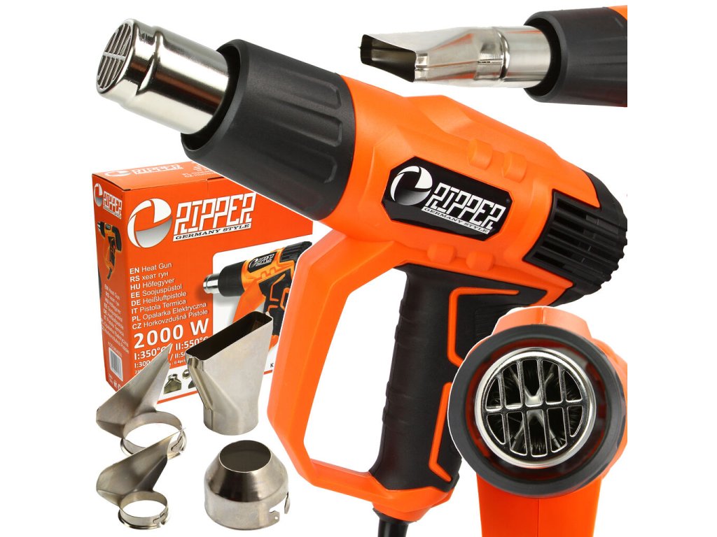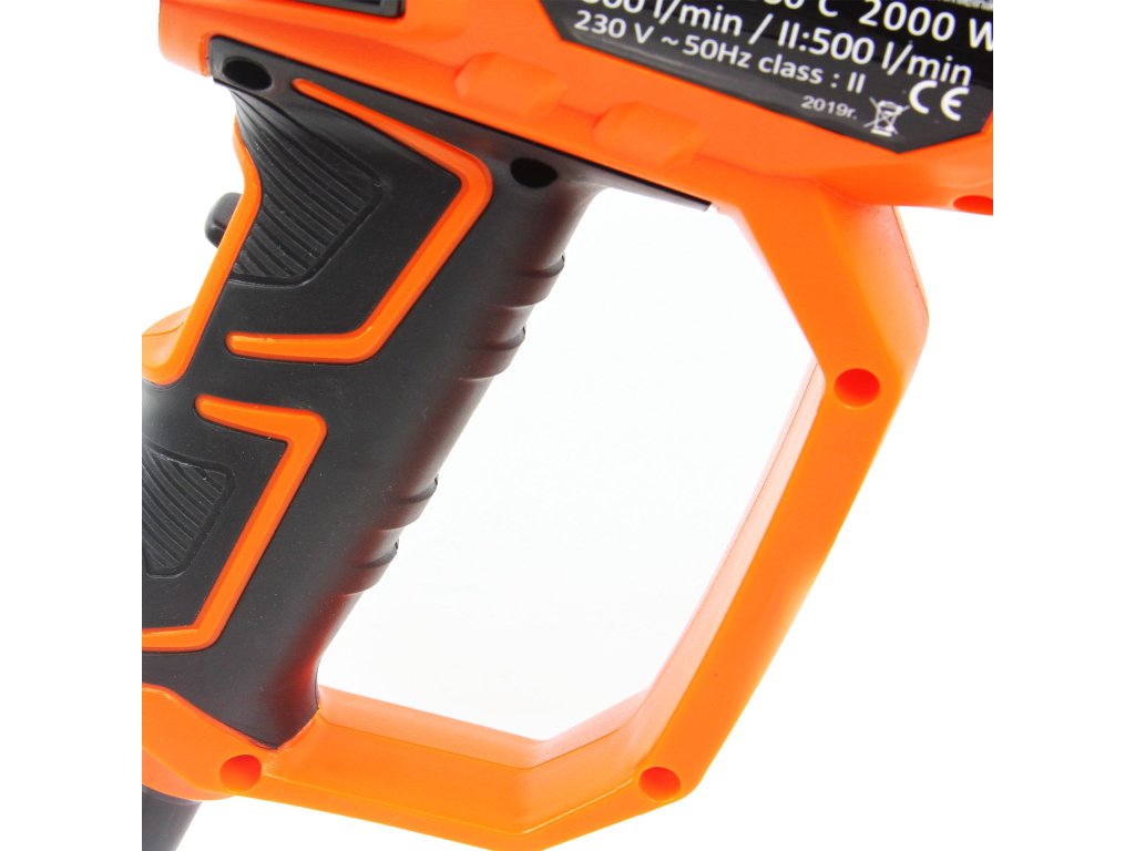 Teplovzdušná pištoľ s výkonom 2000W na odstraňovanie farieb a lakov, tvarovanie a zmršťovanie horúcim vzduchom. Vhodná aj na spájkovanie a zváranie. Ergonomická, mäkká rukoväť a malé rozmery výrazne uľahčujú prácu. Ďalšou výhodou prístroja je 2-stupňová regulácia teploty, ktorá robí prístroj ešte univerzálnejším a pohodlnejším.