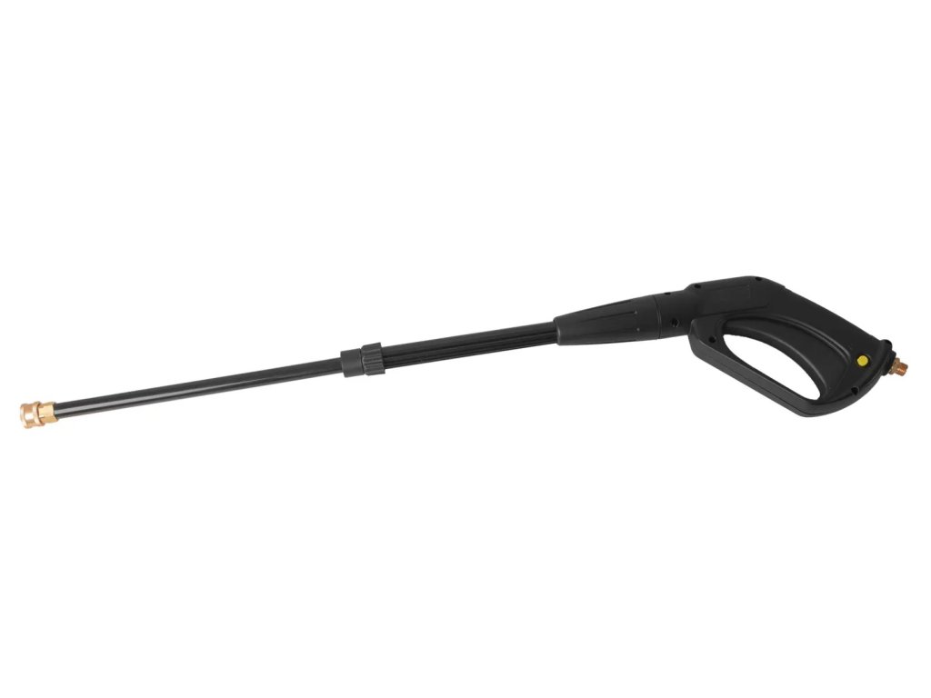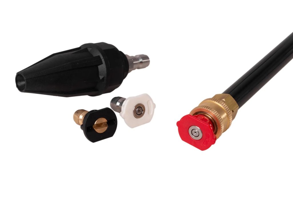 Pištoľ je vybavená rýchloupínacou koncovkou a držiakom so sadou trysiek. Výhodou týchto trysiek je presné formovanie lúča bez straty výkonu, veľmi ľahké čištenie v prípade upchatia, rýchla montáž a demontáž.