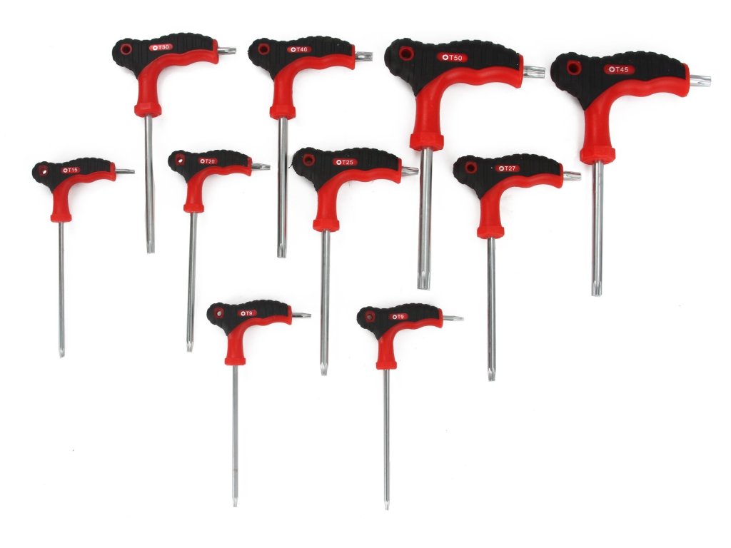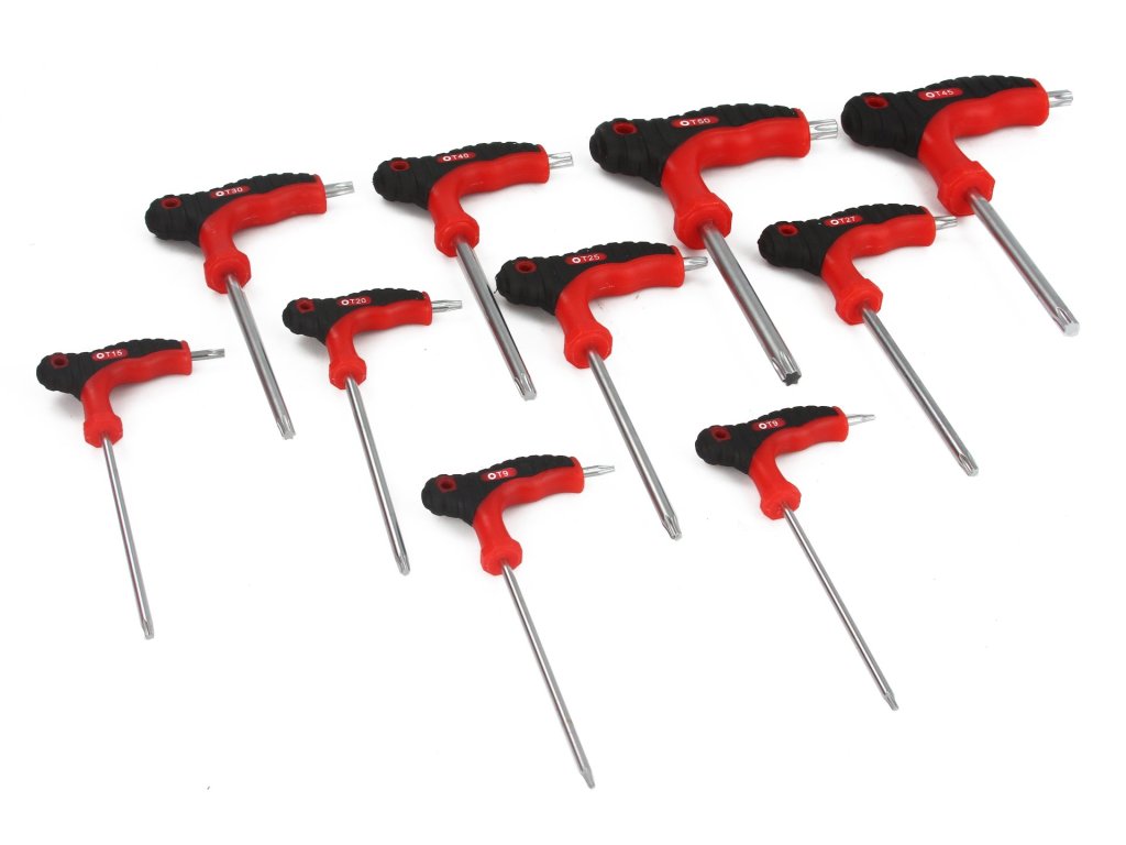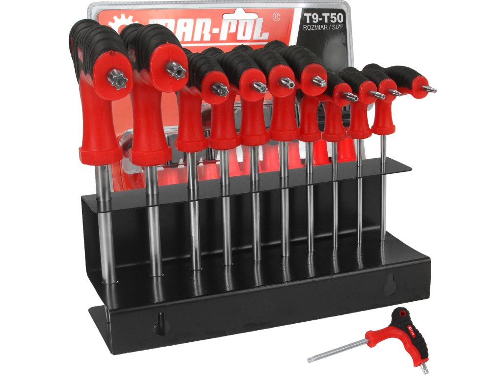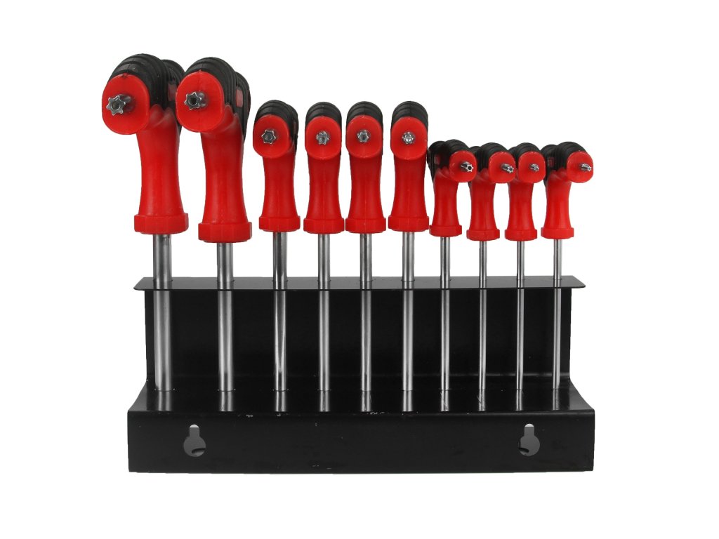 SADA Torx skrutkovačov v tvare "T" 10 ks na kovovom stojane s možnosťou zavesenia na stenu