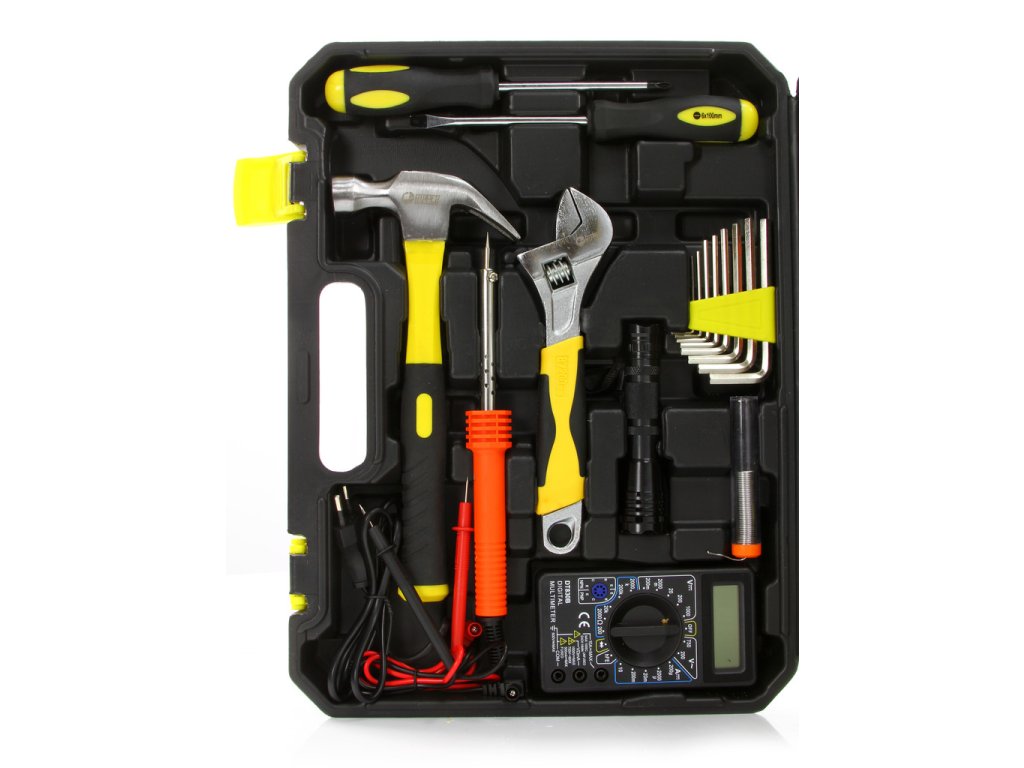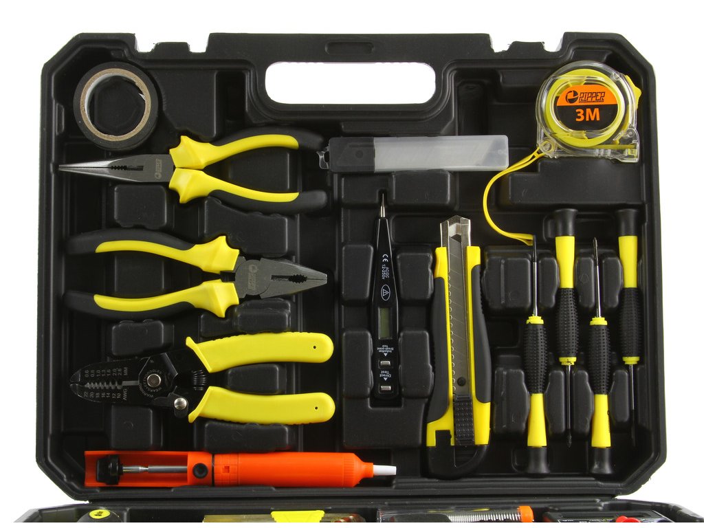 Pevné nástroje sú vyrobené z tvrdenej CrV ocele. (chróm vanádium).Chrómový povlak chráni nástroje proti korózii, oxidácii a nadmernému oderu a poskytuje vysokú odolnosť voči vysokým teplotám.V tomto jednom praktickom kufríku nájde každý elektrikár a kutil základnú dielenskú výbavu postačujúcu na mnohé jednoduché i zložité práce - spájkovačku, cín, multimeter, odstraňovač izolácie - teraz nájdete všetko na dosah ruky!Kufor pomáha pri preprave náradia a organizovaní poriadku na pracovisku a v dielni. Každý nástroj má svoje určené miesto.So súpravou nástrojov RIPPER bude každá práca jednoduchšia!