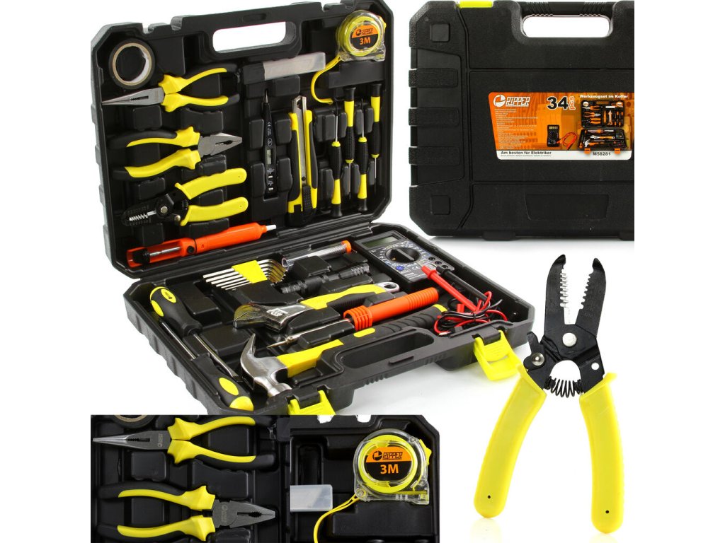 Výborná univerzálna súprava náradia pre elektrikárov v praktickom kufríku.