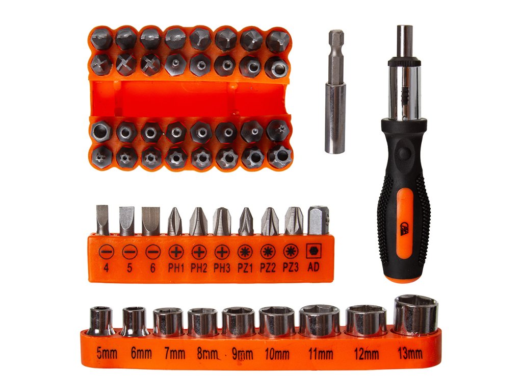 - Sada bitov 80 ks. dĺžka 25mm: (-)SL3-4-4,5-5-5,5-6-6,5-7-8;(+)PH 0-1*2-2*3-3*3; PZ 0-1*2-2*4-3*3; T 8-10-15-20-25-30-40; H 1,5*2-2*2-2,5*2-3*2-3,5-4*2-4,5-5*2-5,5*2-6*2-7-8; TH 8-10-15-20-25-30-40; M 5-6-8; HH 2-2,5-3-4-5-6; SP 4-6-8-10; S 0-1-2-3; AD (adaptér pre 1/4 "hlavy)