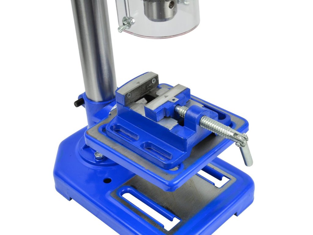 Stolová vŕtačka stĺpového typu vybavená 250W elektromotorom. Pohon klinovým remeňom, s 5-polohovým nastavením otáčok. Pracovný stôl s nastaviteľnou výškou a uhlom sklonu, max. 45° vpravo a vľavo. Vŕtačka podporuje vrtáky s maximálnym priemerom do 16 mm.