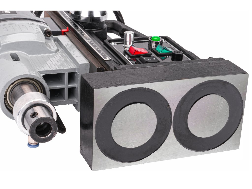 Magnetická sila 14 000 N: Výkonný magnet dokáže generovať prídržnú silu 14 000 N/3 147 lb , čím sa zabezpečí, že sa vŕtačka počas prevádzky nepohne. Naša magnetická vŕtačka sa pri práci bezpečne ukotví vďaka svojej elektromagnetickej základni.