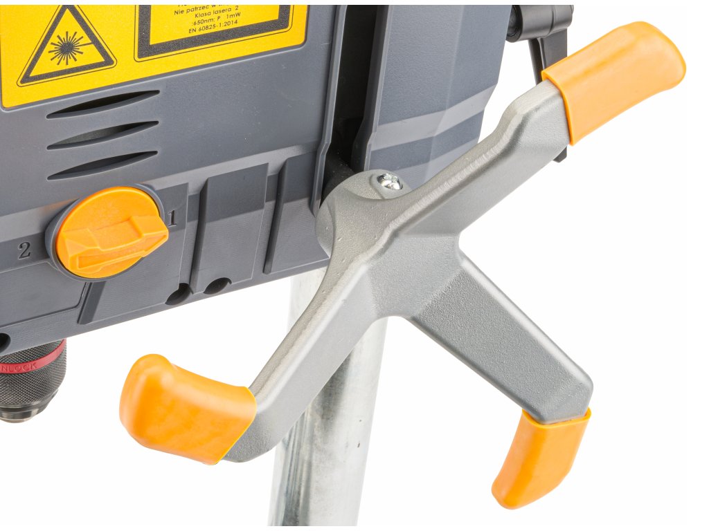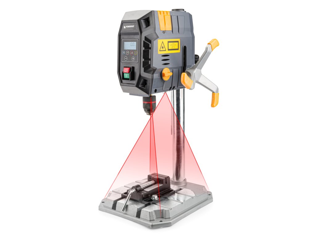 Dvojrýchlostná stĺpová vŕtačka 1000W s krížovým laserom a LED podsvietením.