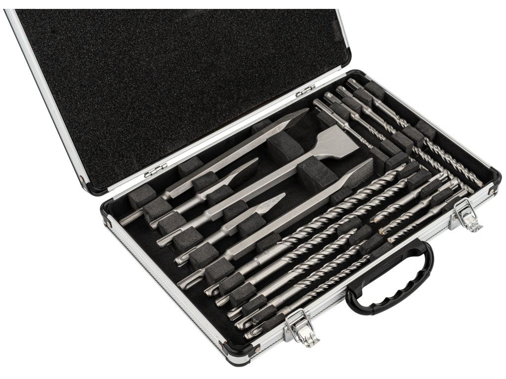 Dostanete 17 komponentov: 12 vrtákov a 5 sekáčov s upevnením sds-plus, kompatibilných s akýmkoľvek vŕtacím kladivom SDS-PLUS.