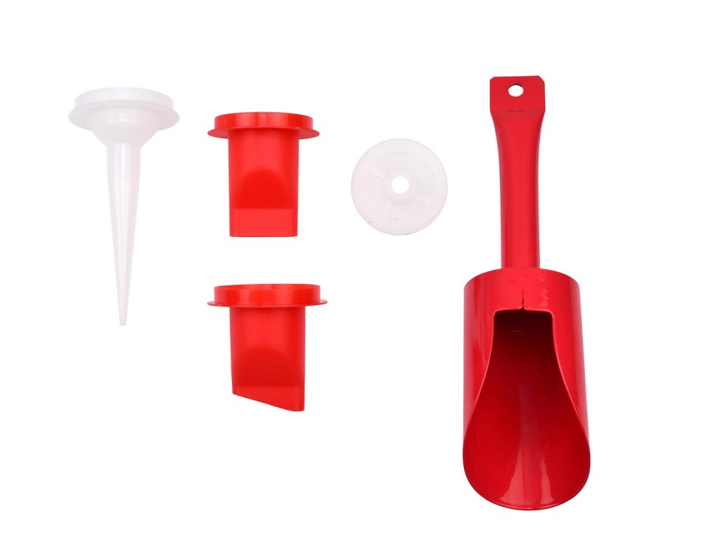 Sada obsahuje tri typy hrotov, náhradný piest a špeciálne tvarovanú špachtľu na nanášanie zmesi.