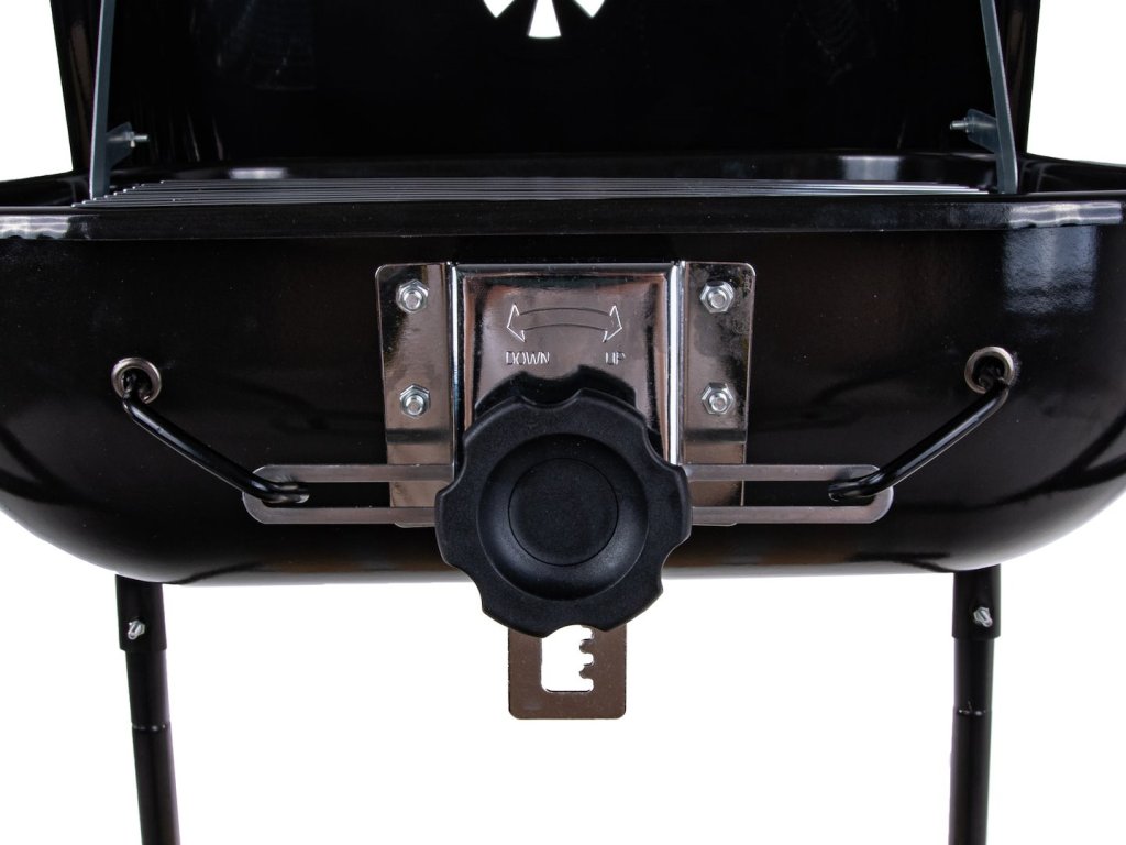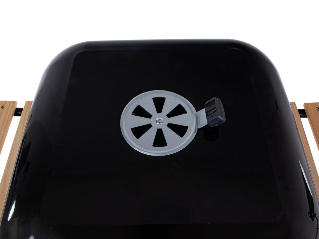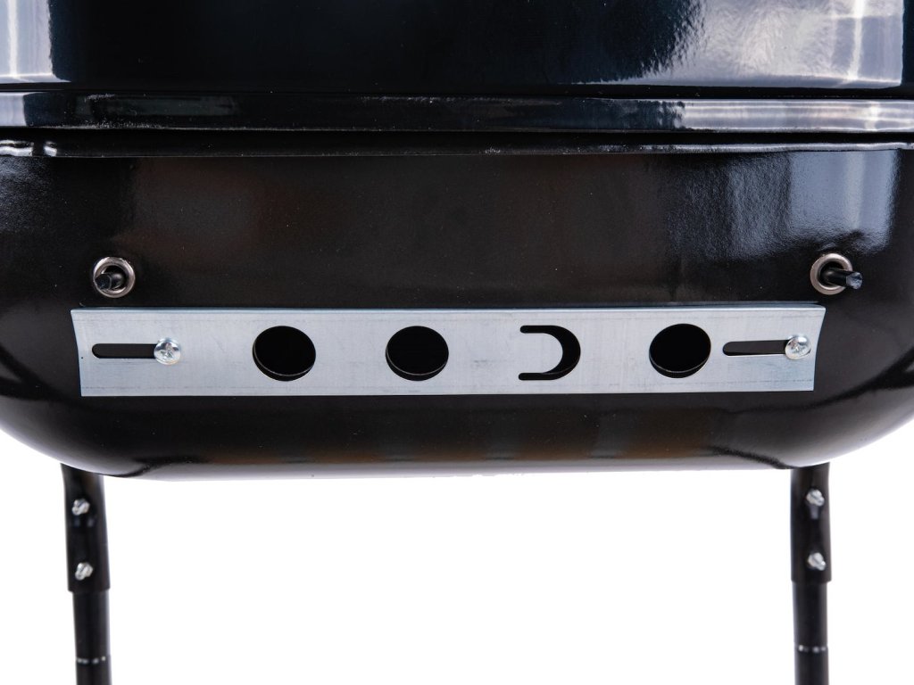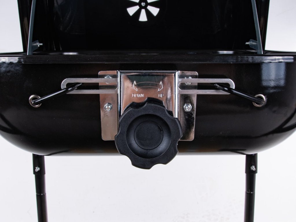 - Klapka na reguláciu cirkulácie vzduchu - Klapka na reguláciu cirkulácie vzduchu umožňuje presnú kontrolu nad úrovňou ohrevu dreveného uhlia. Otváraním a zatváraním uzáveru môže užívateľ regulovať množstvo vzduchu vstupujúceho do ohniska.