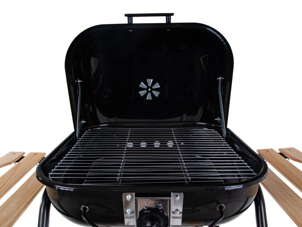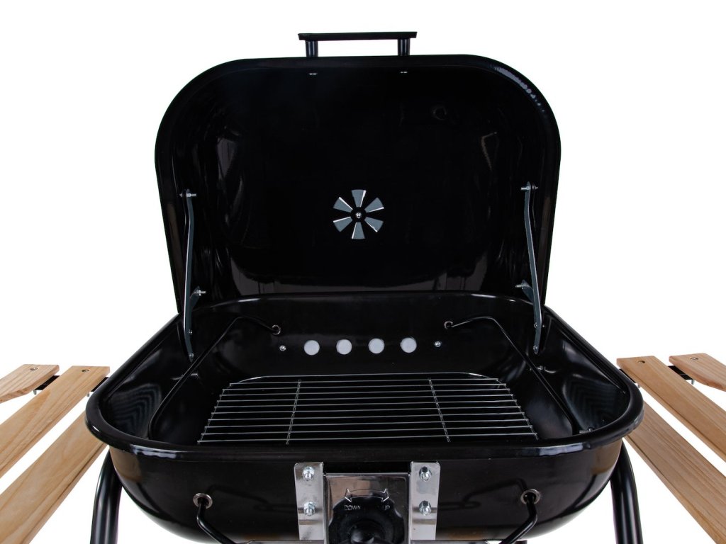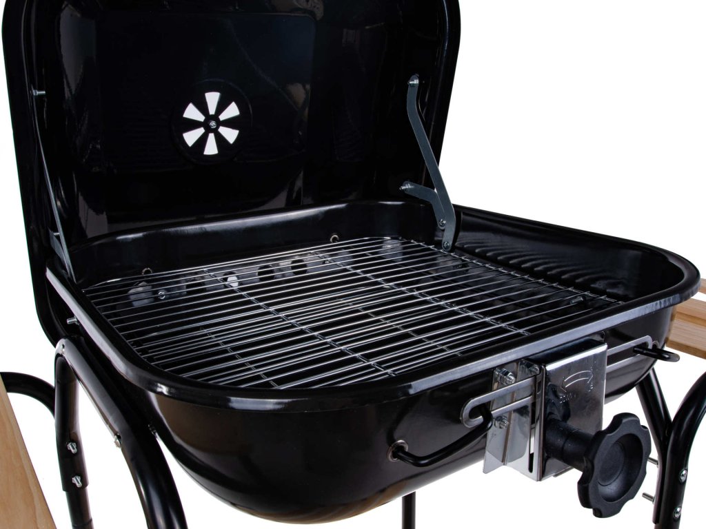 - Bočné police s funkciou rukoväte - Náš gril na drevené uhlie je vybavený dvoma bočnými policami s rozmermi 20,5 x 43 cm , ktoré zároveň slúžia ako madlá.