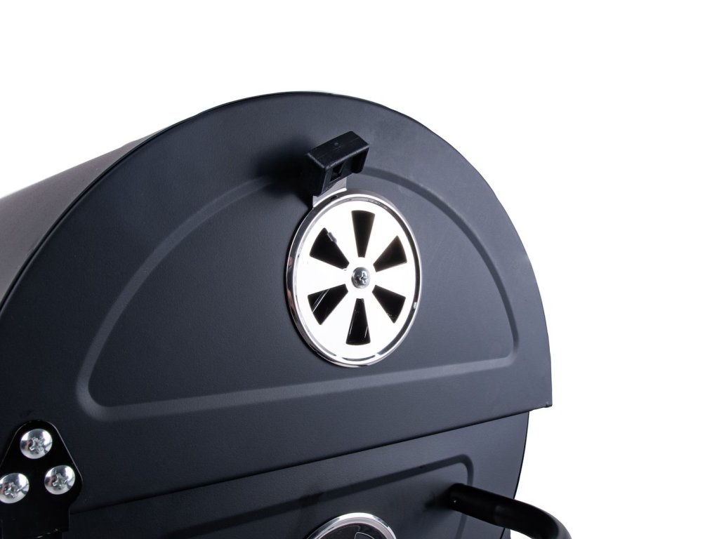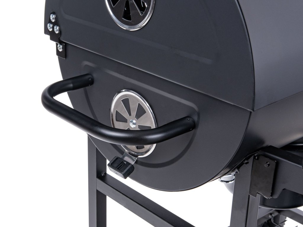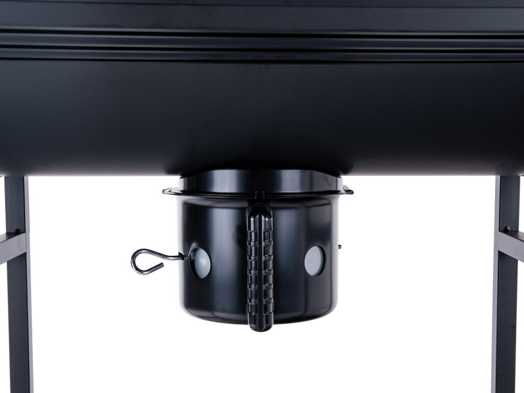 - Veľký otvor na popol - zaisťuje veľmi dobrý odvod spáleného dreveného uhlia do lapača popola. Po grilovaní sa odporúča zvyšný nahromadený popol vybrať zo dna suda do lapača popola.