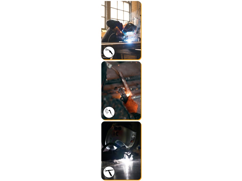 Model podporuje metódy zvárania FCAW, MMA a TIG, ktoré sú všestranné. Umožňuje pracovať s rôznymi materiálmi a v širokom rozsahu hrúbok.
