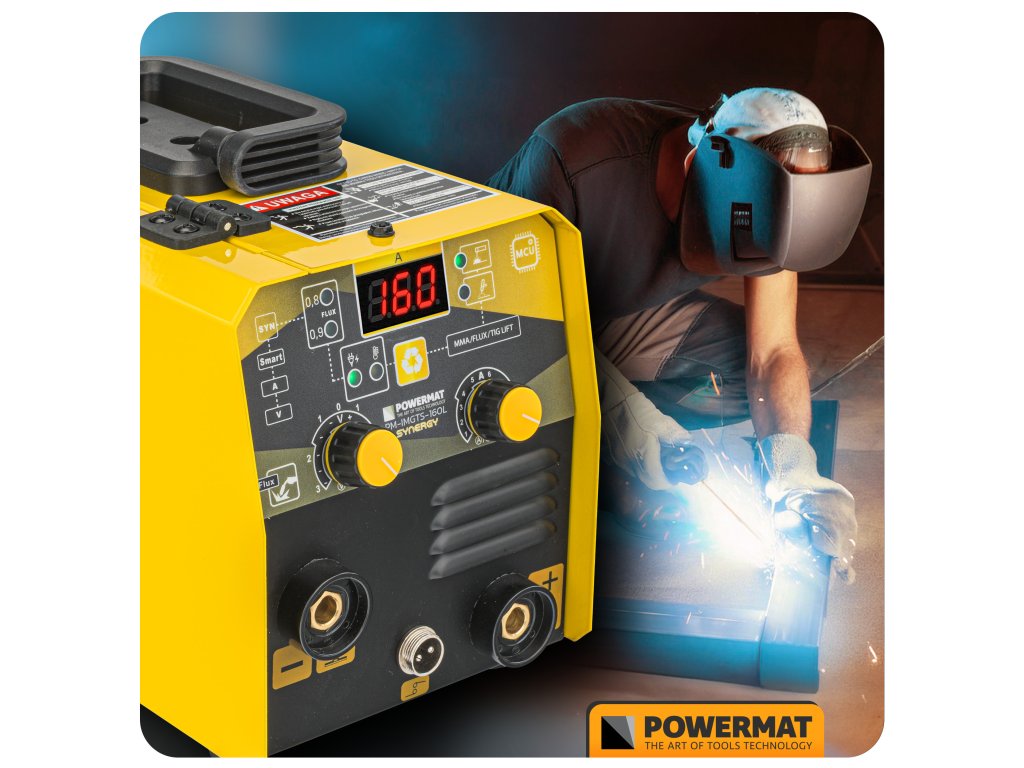 Poloautomatická zváračka Powermat využíva najmodernejšie tranzistory IGBT, ktoré zabezpečujú stabilný oblúk, vysokú energetickú účinnosť a odolnosť voči rušeniu. Vďaka tomu je stroj ľahší, úspornejší a spoľahlivejší v prevádzke.