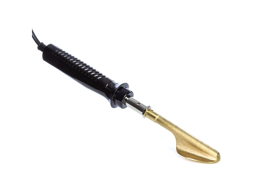 Ručná spájkovačka, zváračka plastov so žehliacou plochou. Žehlička slúži na vyhladzovanie plastových povrchov. Na opravu a vystužovanie plastových dielov, napríklad nárazníkov automobilov a pod. Rovnomerné a efektívne rozloženie tepla zaručuje trvanlivé a pevné spojenie medzi plastovými prvkami. Vďaka presnému ovládaniu je možné modelovať a vyhladiť nepravidelnosti, prinavrátiť prvky do pôvodného tvaru. V prípade poškodených prvkov, ako sú praskliny, alebo diery v plastových častiach, spájkovačka s výstužnou sieťovinou umožňuje efektívne a trvalé opravy. Spoje sú pevné a odolné voči ďalšiemu poškodeniu. Spájkovačka umožňuje presné a kontrolované zváranie plastových dielov.