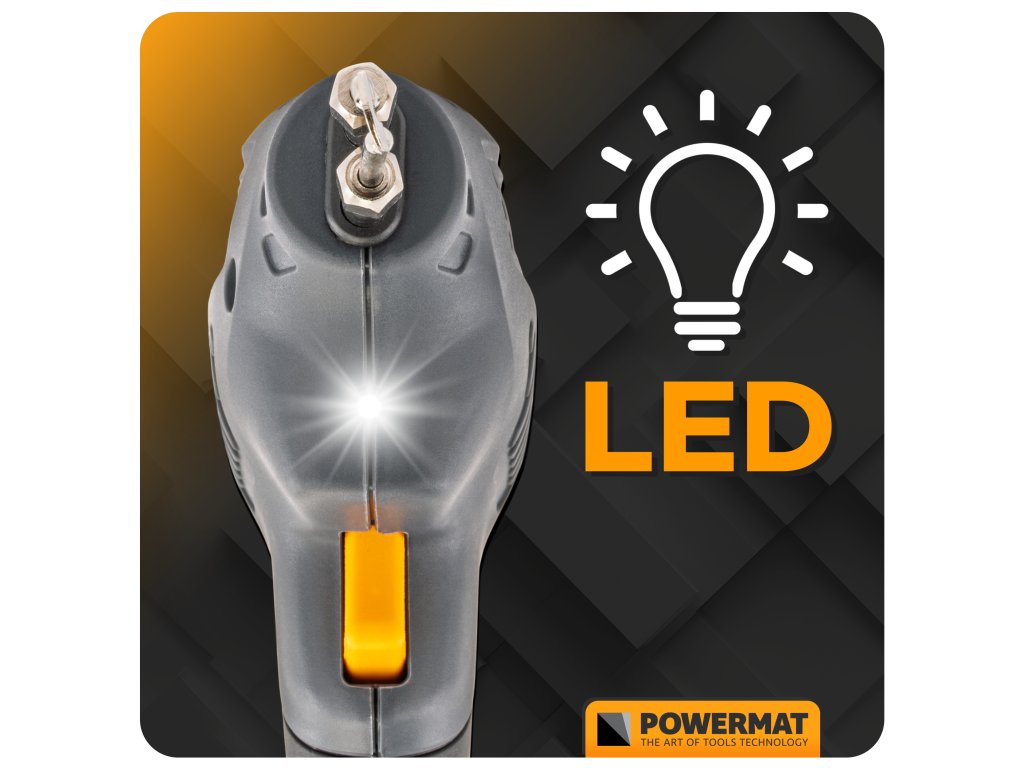 - Vstavané LED svetlo osvetľuje spájkovací bod, čím zvyšuje presnosť a uľahčuje prácu v oblastiach s obmedzenou viditeľnosťou