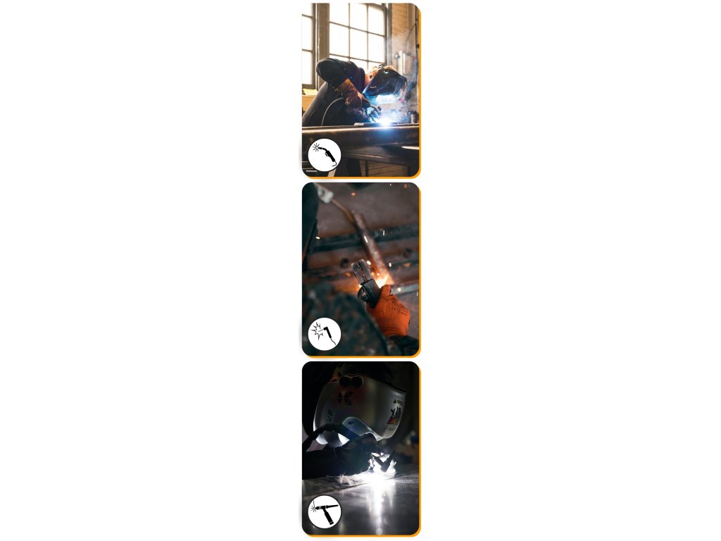 Zabudované funkcie HOT START, ANTI STICK, ARC FORCE, VRD a BurnBack zvyšujú pracovný komfort a kvalitu zvárania a znižujú riziko skratu a rozstreku.