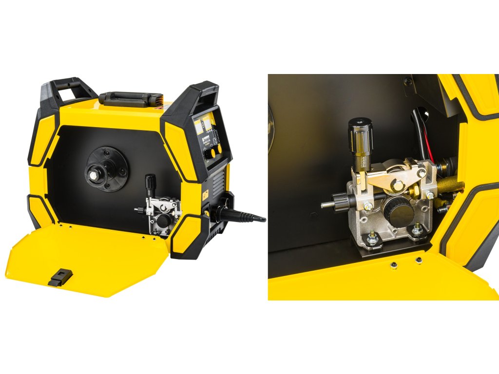 2-kladkový podávač umožňuje presné podávanie zváracieho drôtu, čím sa eliminuje jeho kĺzanie.